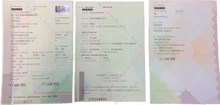 - Kentekenbewijs deel II (voertuigbewijs)